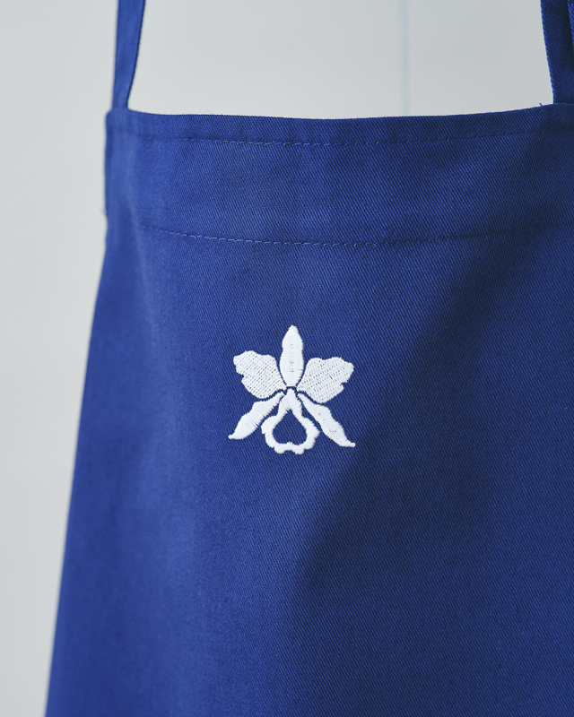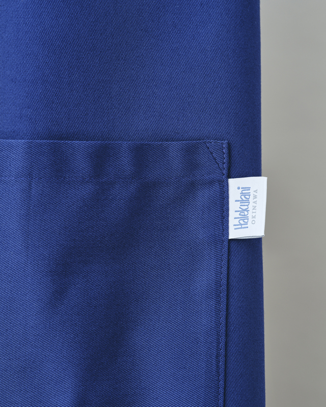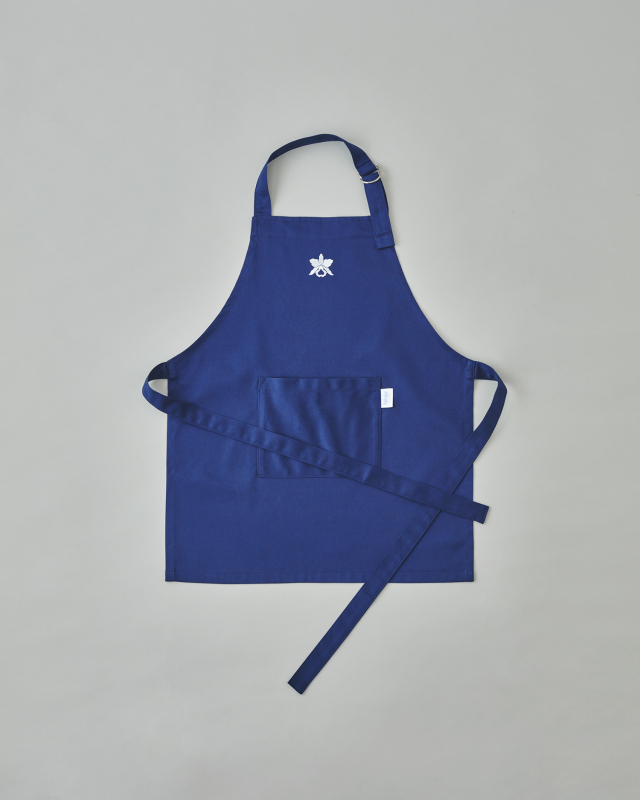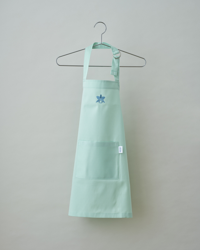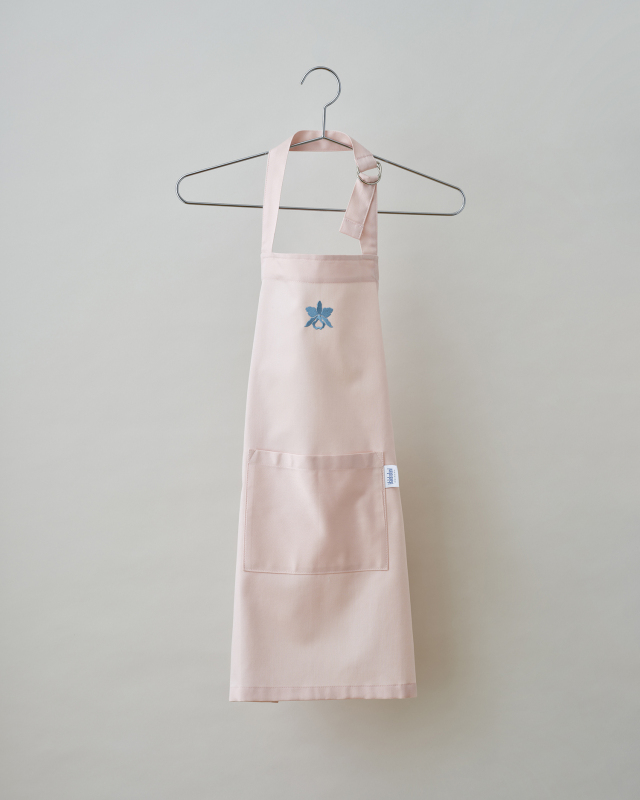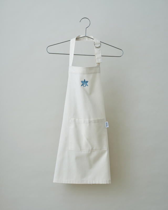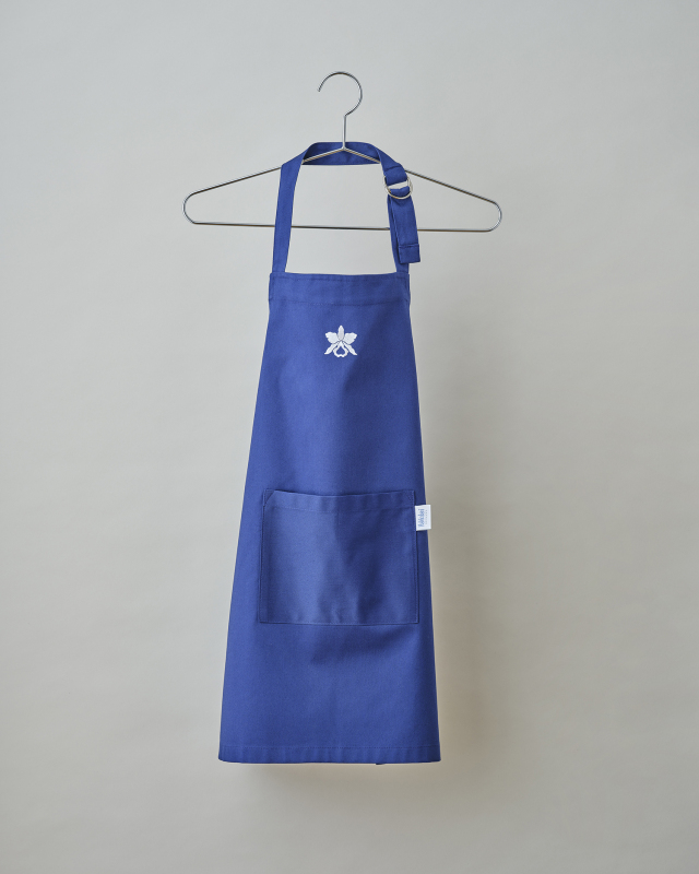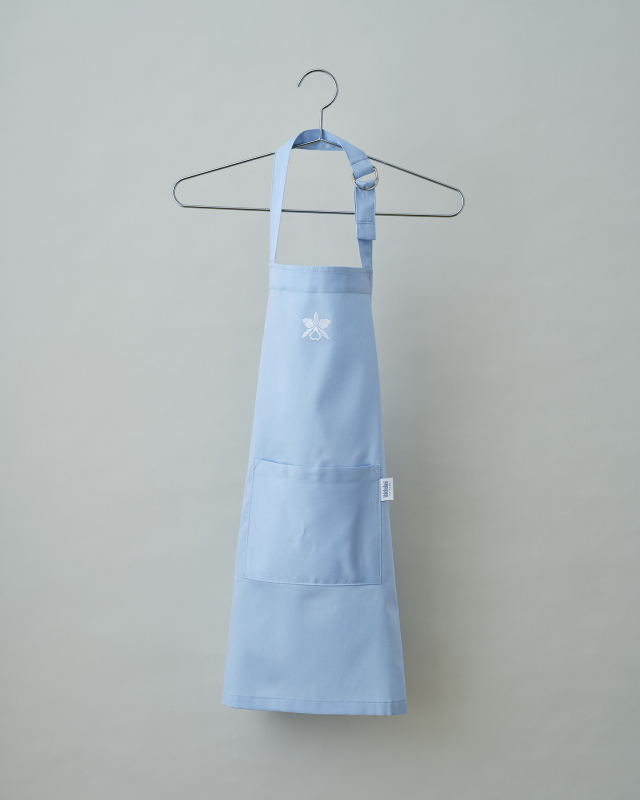 オーキッドマークの刺繍があしらわれたエプロンは、フロントポケットとハレクラニ沖縄のタグ付きのデザイン。大人のエプロンと同じ仕様で、親子でクッキングを楽しめます。