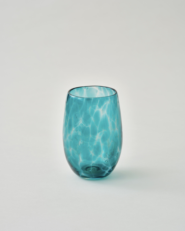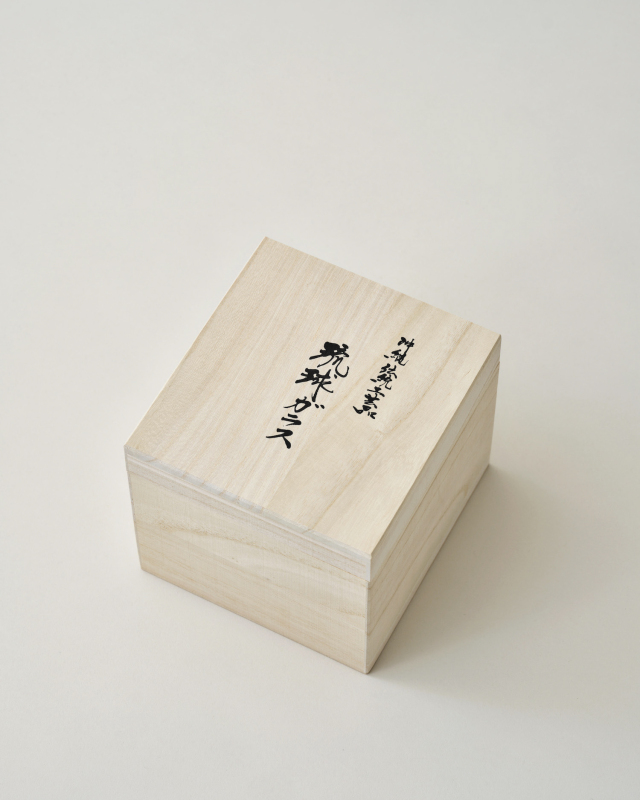 光をテーマに琉球ガラスをつくり続ける沖縄県工芸士・友利 龍(ともり りゅう)氏の作品です。サーフィンが好きな友利ならではの砂浜に映る水面の影を表現したグラス。丸みを帯びた形も特徴です。ぜひ“光”と“影”のコントラストをお楽しみください。保存にも便利な、桐箱入りです。