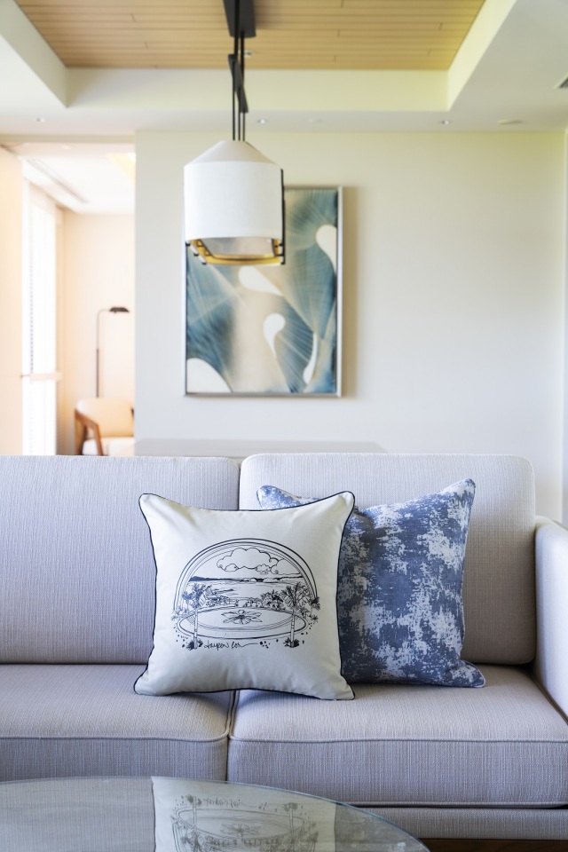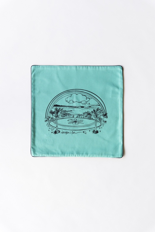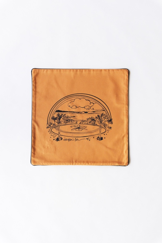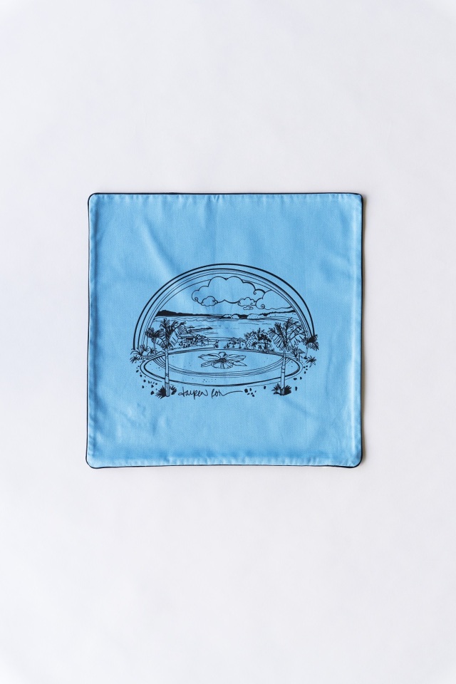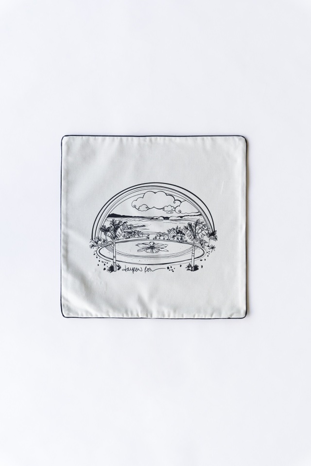 ハワイ在住のアーティスト&デザイナー、ローレン・ロスが、ハレクラニ沖縄のために描き下ろしたオーキッドプールのプリントと、ハレクラニロゴの刺繍が上品にあしらわれたクッションカバー。カラーはオールドサックス、ミントグリーン、サンドベージュ、コーラルピンク、ベジタブルオレンジの5色をご用意しています。ローレンロスの描いたオーキッドとハレクラニロゴのクッションをリバーシブルでお楽しみいただけます。