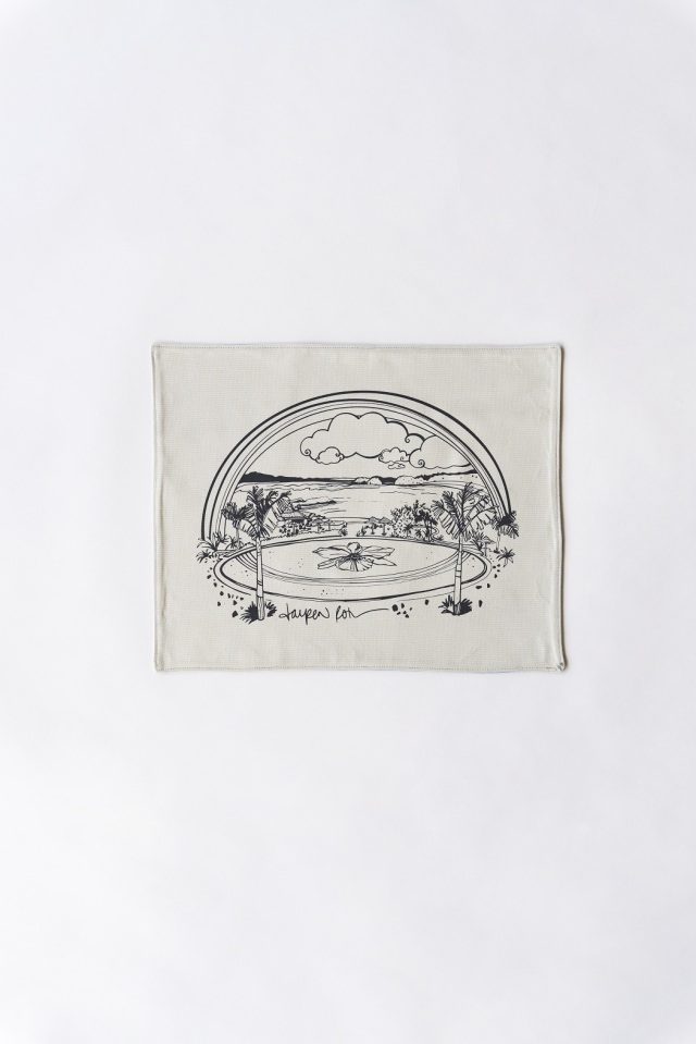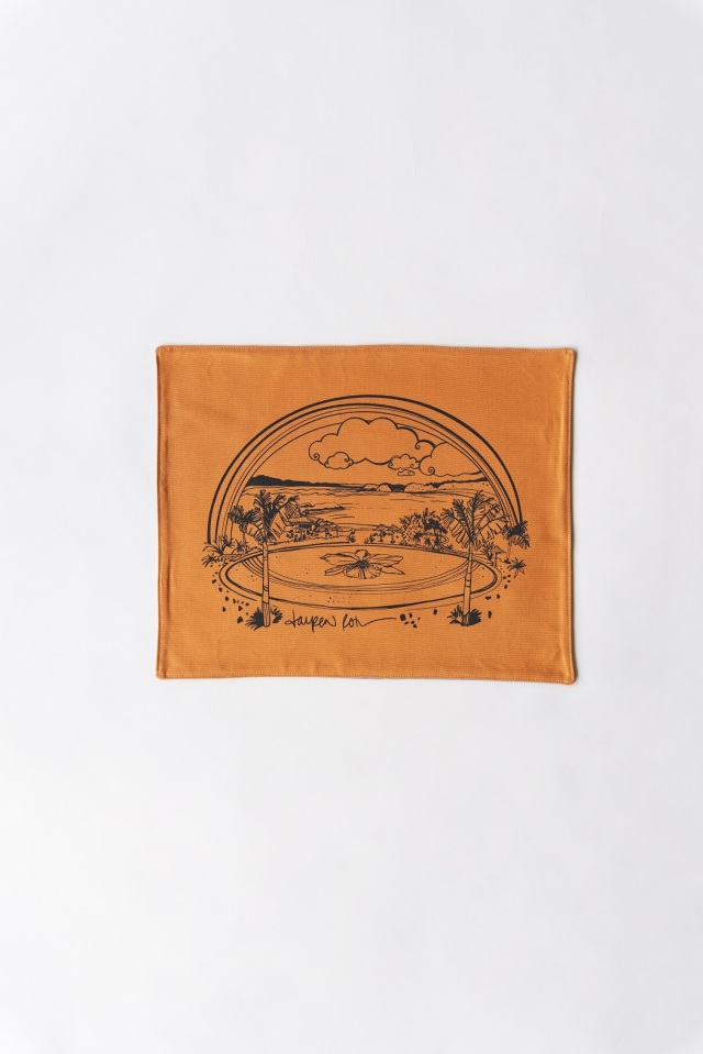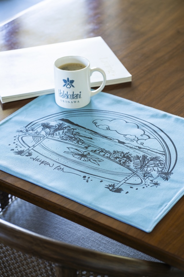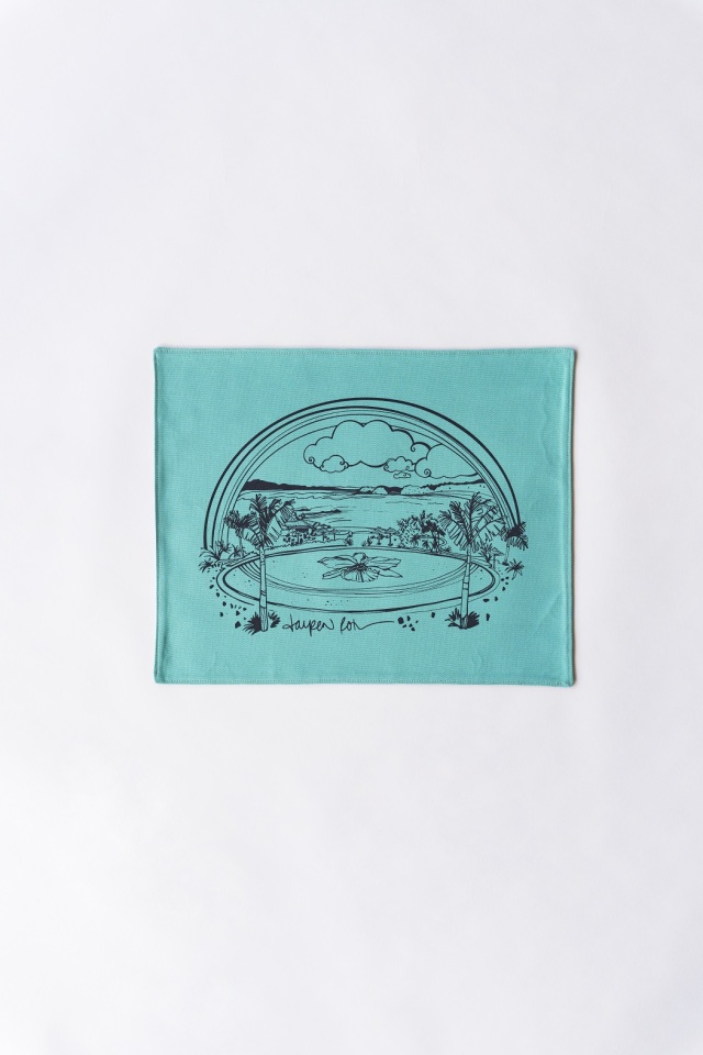 ハワイ在住のアーティスト&デザイナー、ローレン・ロスが、ハレクラニ沖縄のために描き下ろしたオーキッドプールと、ハレクラニロゴがプリンとされたランチョンマット。カラーはオールドサックス、ミントグリーン、サンドベージュ、コーラルピンク、ベジタブルオレンジの5色をご用意しています。ローレンロスの描いたオーキッドとハレクラニロゴのランチョンマットをリバーシブルでお楽しみいただけます。
